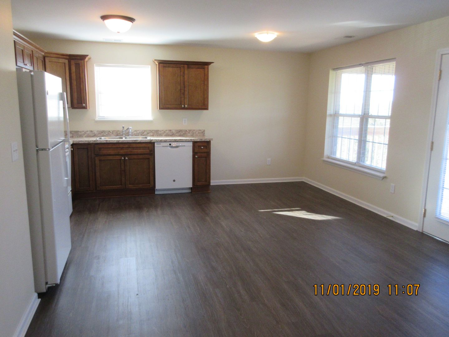 One bedroom, One bath, open floor plan with the kitchen and living room, a large covered deck with privacy. The apartment has washer/dryer hook-ups with water/sewer and trash paid. Upstairs